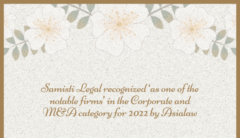 As per The Bar Council of India Rules and The Advocates Act, 1961, an advocate cannot approach his/her client or advertise or promote his profession by way of advertisements or solicitation. Thus the materials on this website are intended for informational purposes only. The materials on this website are neither intended to be, nor should they be interpreted as, legal advice or opinion. The reader should not consider this information to be an invitation to an attorney client relationship, should not rely on information presented here for any purpose, and should always seek the legal advice of counsel in the appropriate jurisdiction. Transmission and receipt of the information in this site and/or communication with the Samisti Legal LLP (“Samisti Legal / Firm”) via e-mail/ chat / blog or any other mode is not intended to solicit or create, and does not create, an attorney-client relationship between Samisti Legal and any person or entity. The information provided under this website is solely available at your request for informational purposes only, should not be interpreted as soliciting or advertisement…